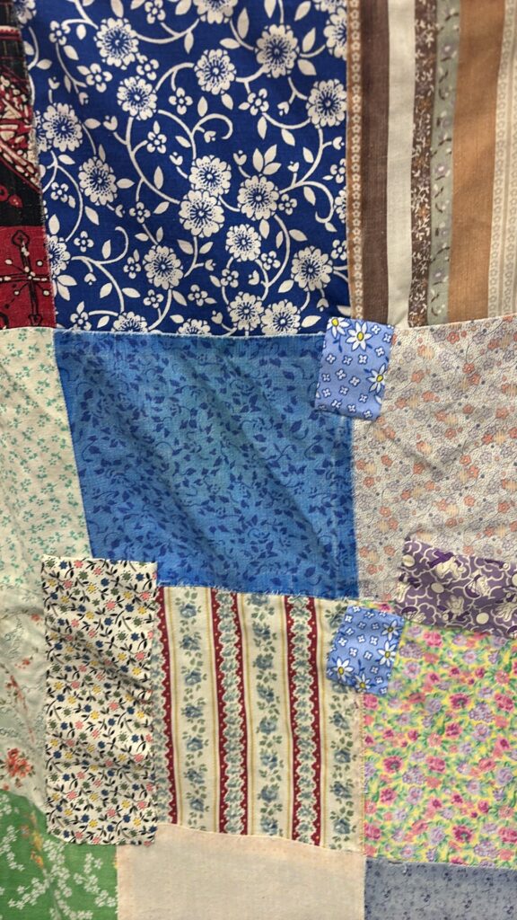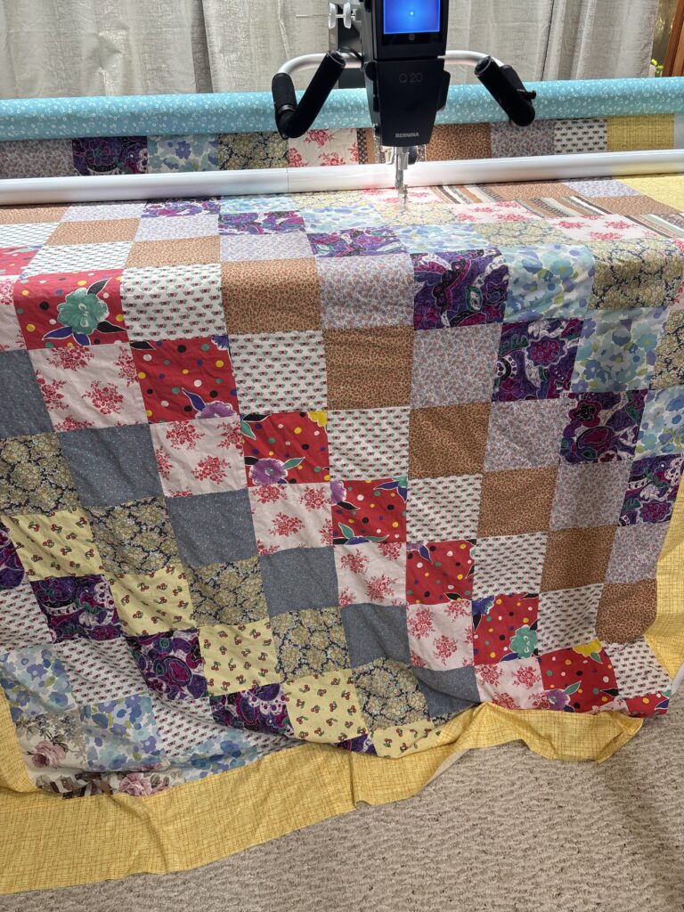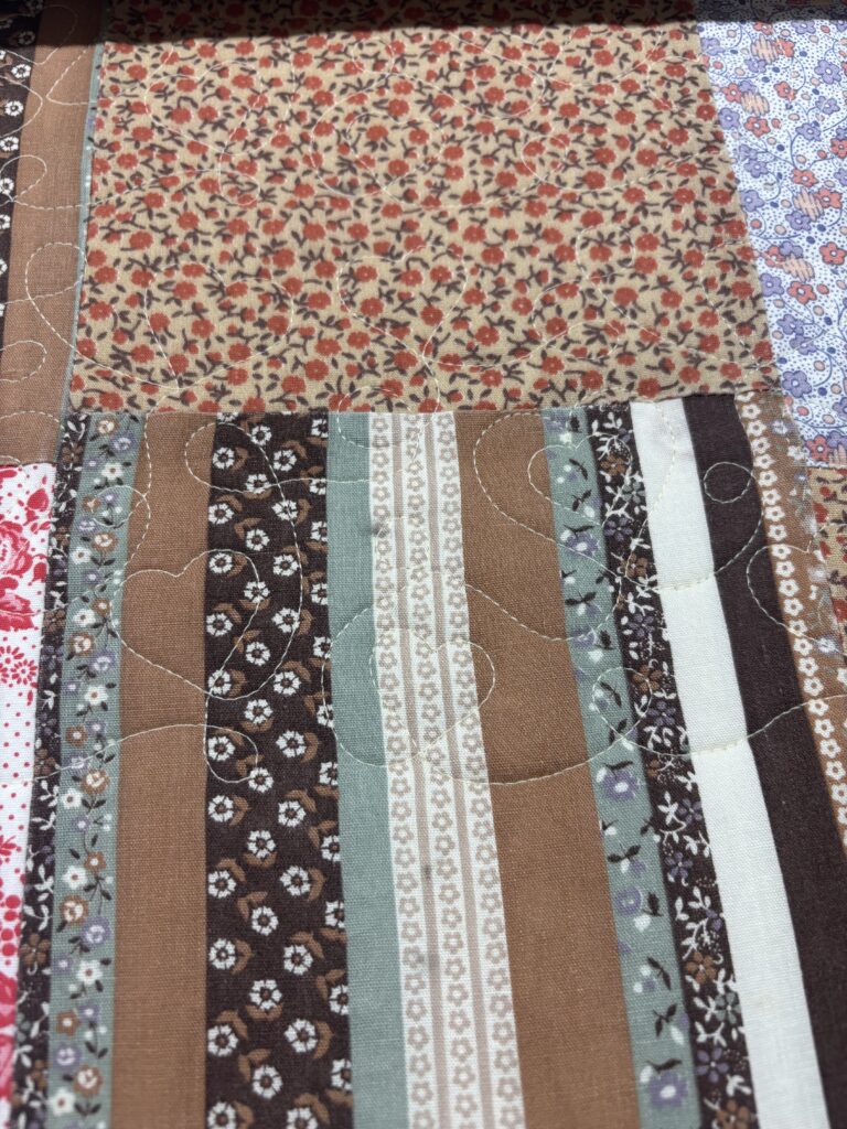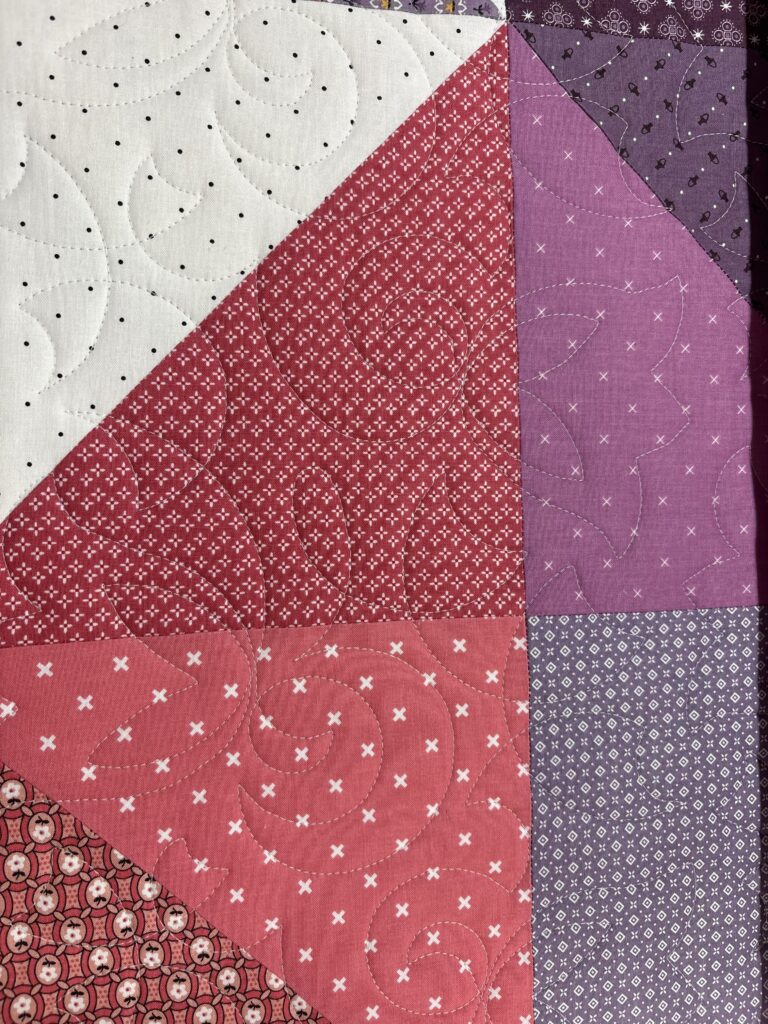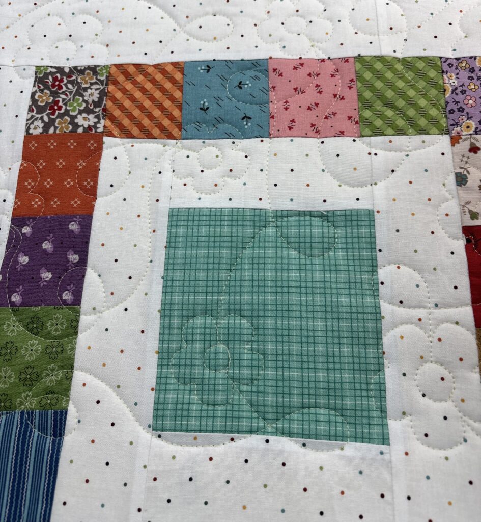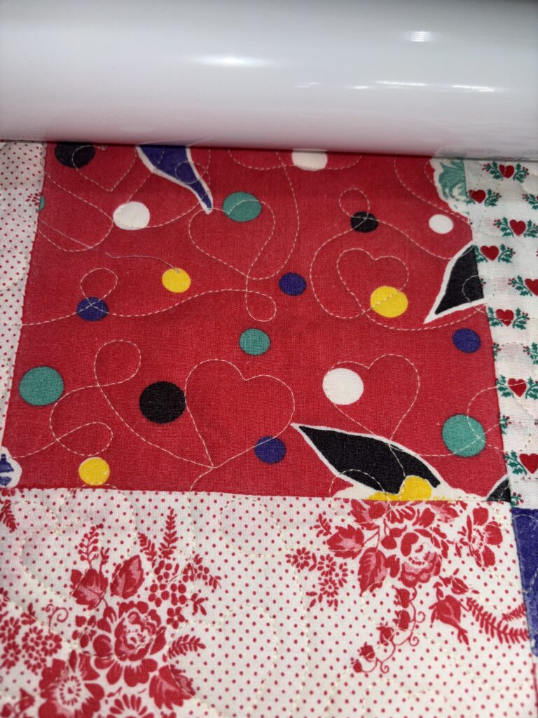 Recently a family asked us to put some life into some quilt tops made with a grandmother who passed over 25 years ago. Char mended the holes as she thought the grandmother might have, and added some special motifs for the family to find within the longarming. The family member said with tears in her eyes: